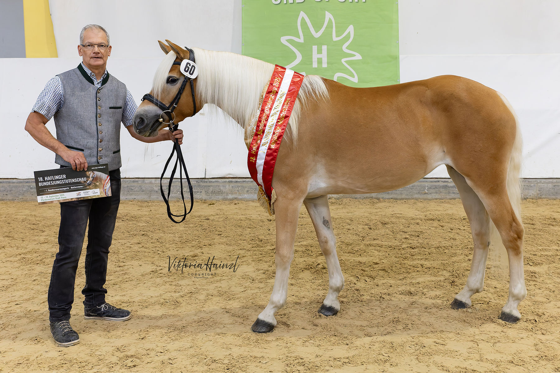 Die Kärntner Haflinger präsentierten sich heuer so stark, dass am Ende auch drei der rot-weiß-roten Bundesschärpen an Kärntner Besitzer überreicht wurden. Bundessiegerin bei den vierjährigen Galtstuten wurde die Tochter des Prämienhengstes Neugold High-Heels aus einer bewährten Kärntner Mutterlinie. Sie ist aus der Staatsprämienstute Himalaya nach Prämienhengst Winnie gezogen, stammt aus der Zucht von Hans Irausek, Bad Hofgastein, und steht nun im Besitz von Sarah Janesch, Köstenberg. Sie präsentierte sich modern, harmonisch im Seitenaufriss, ausdruckstark und mit sehr guter Bewegung.